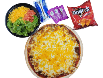 Taco Meat, Light cheese, Cheddar Cheese, Sour Cream, Taco Sauce, Cheddar, Lettuce and Tomatoes.